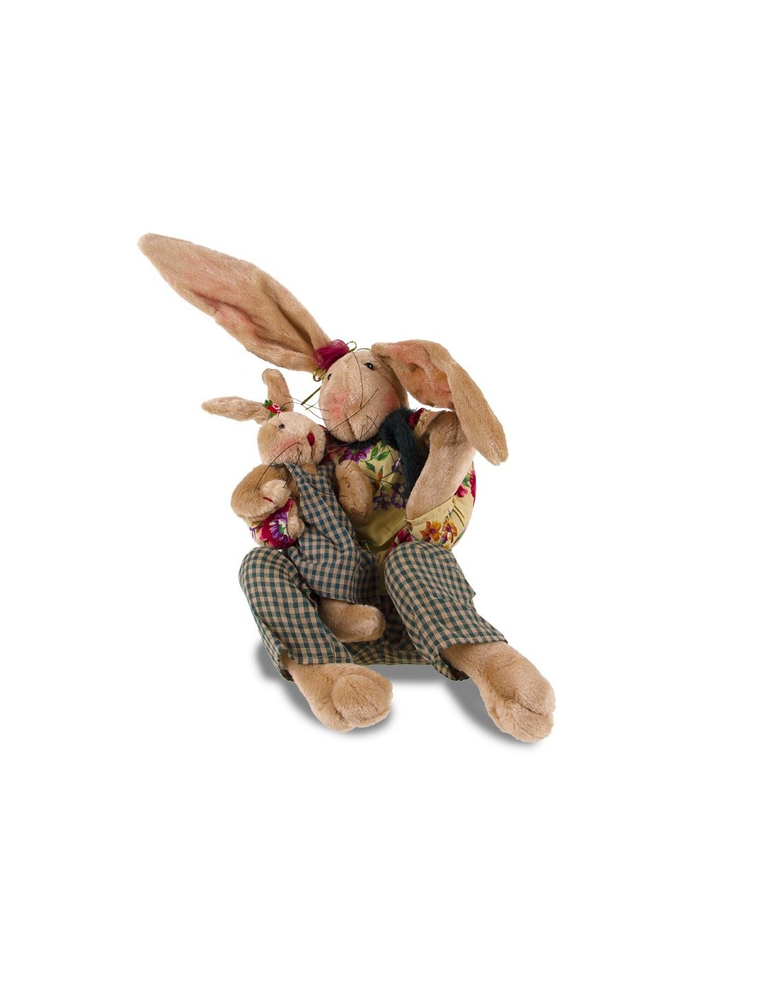 "A decorative item featuring a rabbit with a sitting baby rabbit, measuring 40 cm, would be ideal for adding a charming and gentle touch to an interior.
