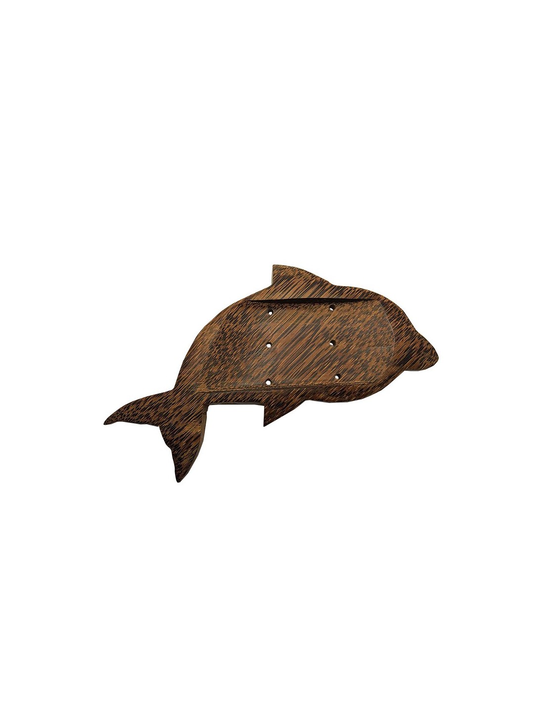 Una jabonera de madera natural, tallada a mano por nuestros artesanos, con una especie de madera de color marrón moteado, madera de coco. Está diseñado para contener jabones de manos sólidos. También es adecuado para cualquier tipo de jabón sólido en general, como los champús sólidos.