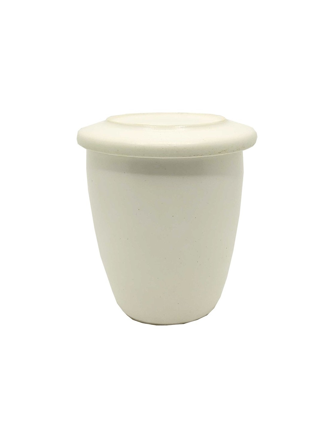 Mug avec couvercle, sans anse, en céramique blanche matte, réalisation artisanale. Cette grande tasse à thé ou à café est parfaite pour les moments de détente. Son couvercle assorti permet de garder le liquide au chaud pendant l'infusion du thé, puis de poser le sachet une fois infusé.