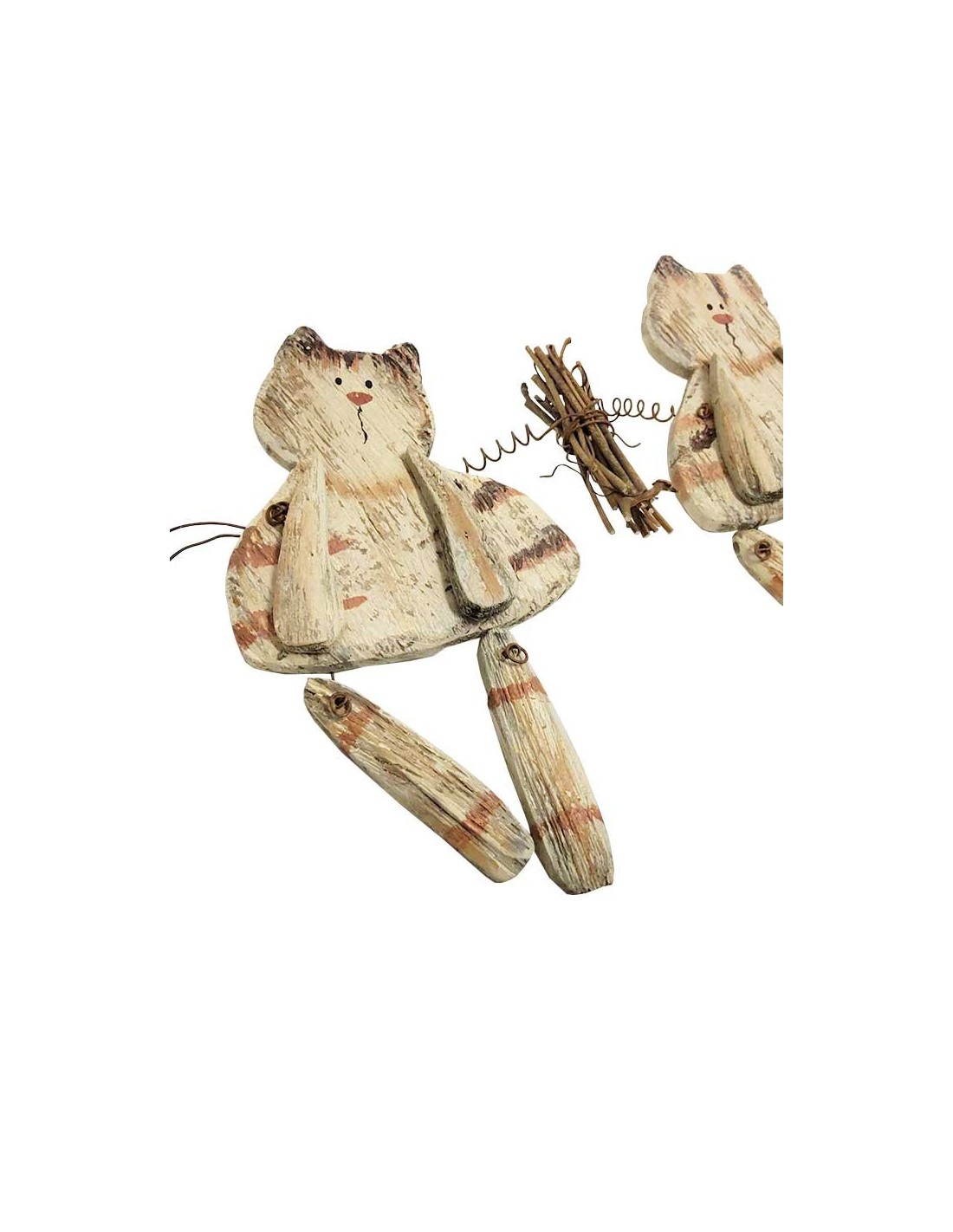 Guirlande en métal avec petits chats en bois peints aux jambes articulées, et fagots de brindilles. Une belle décoration pour l'automne, les chats bruns clairs sont tigrés de deux couleurs naturelles et le métal de la guirlande est couleur rouille.