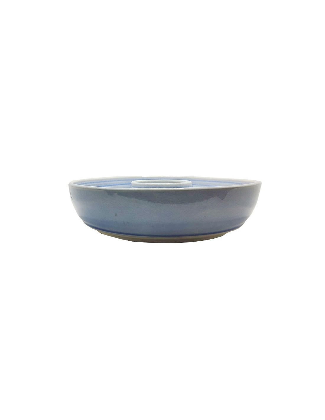 Piatto rotondo in terracotta smaltata blu, a forma di mezza ciambella, realizzato artigianalmente. Questo piatto rotondo con bordi alti e foro al centro è perfetto per cuocere dolci o per presentare piatti e stuzzichini.