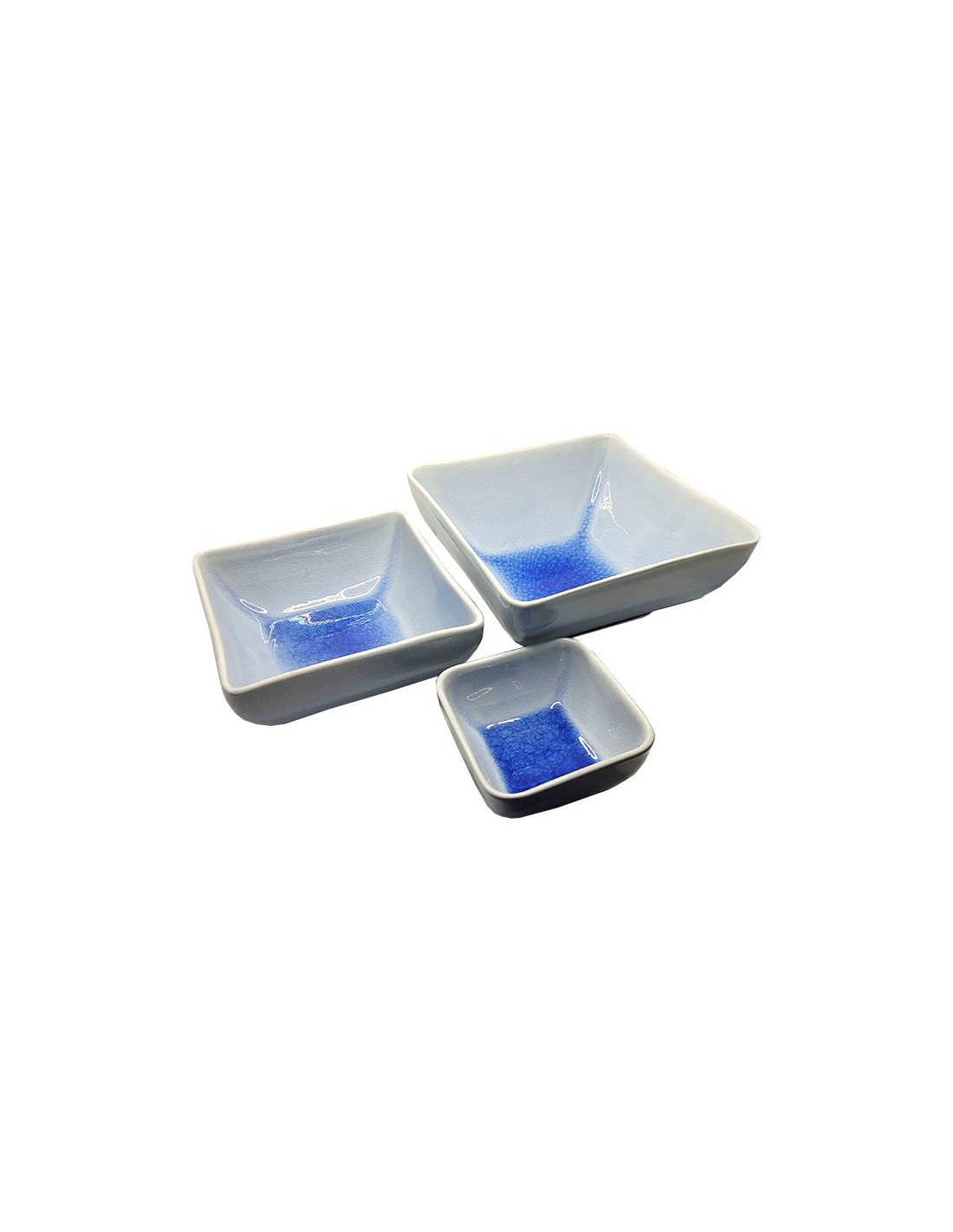 Set van 3 vierkante schalen van groen geglazuurd keramiek met bruine achtergrond. Zorgvuldig vakmanschap. Stapelbaar voor eenvoudige opslag. Ideaal voor de Aziatische keuken of een verzorgde presentatie.